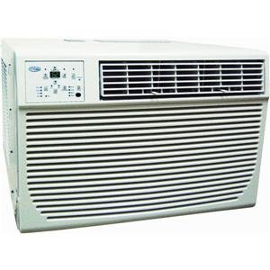 Window Air Conditioner With Electric HeaterThe 12,000 BTU window air conditioner with electric heater from Perfect Aire provides cooling or heating and uses environmentally-friendly refrigerant. The unit features electronic controls, full function remote, and 4-way adjustable front louver to direct the airflow both horizontally and vertically. Additional features; 24 hour On/Off timer, energy saver mode, and auto restart. The 8500 BTU electric heater is designed for supplemental heat only. Thermostat controls the heating element On and Off. Covers approximately 450 sq. ft. to 550 sq. ft. 15A/230V. Minimum window height 16-1/2 IN. Minimum window width 16-1/2 IN and maximum window width 27 IN to 36 IN.